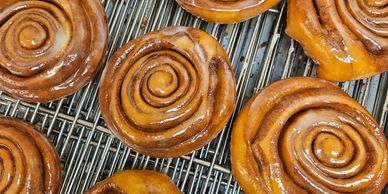 Cinnamon Rolls-Swirls of cinnamon and glaze in between our fluffy raised dough.